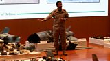 A Saudi spokesman shows journalists wreckage he says is from Iranian-made drones