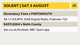 Coverage of Shrewsbury Town v Portsmouth (NOT online) and Eastleigh v Notts County.