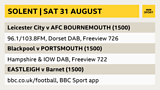 Leicester v Bournemouth and Blackpool v Portsmouth. NOT online. Also Eastleigh v Barnet.