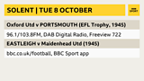 Oxford United v Portsmouth (EFL Trophy - NOT online) and Eastleigh v Maidenhead United.