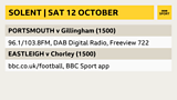 Portsmouth v Gillingham. NOT online. Also Eastleigh v Chorley (BBC Sport website)