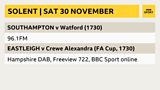 Coverage of Southampton v Watford (NOT online) and Eastleigh v Crewe Alexandra (FA Cup).