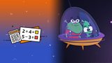 Aliens Snoot and Fin use different maths strategies to solve everyday challenges.