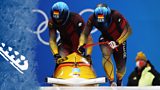Action from the men's team ski jump and the first two runs of the men's two-man bob.