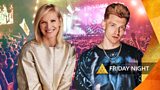 Jack Saunders and Jo Whiley get ready to welcome the first headliner, Dua Lipa.