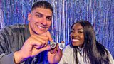 Richie and Mwaksy reveal Blue Peter’s brand new sparkling Silver Badge.(R)