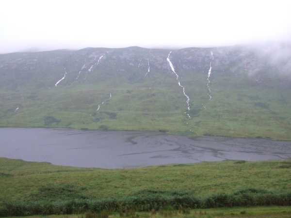 Serious amounts of water pouring off the hills above Loch Sguabain on Friday morning