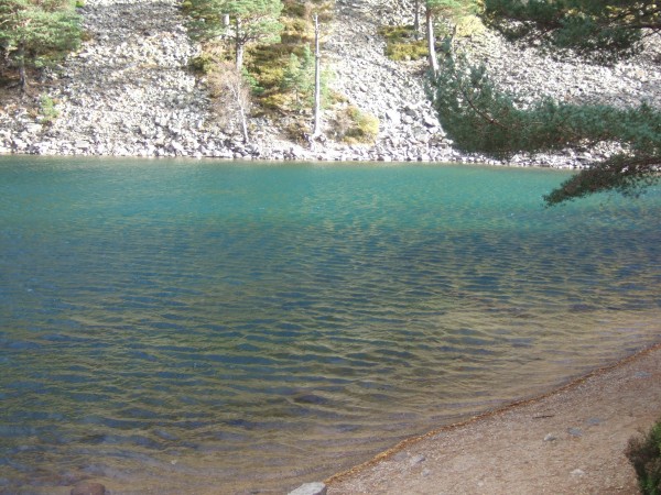 Last port of call was the famous "Lochan Uaine" in the Pass of Ryvoan, just a short distance from the Glenmore Lodge outdoor centre. The water is a beautiful blue-green colour (hence the name) supposedly because the fairies washed their clothes in it.....