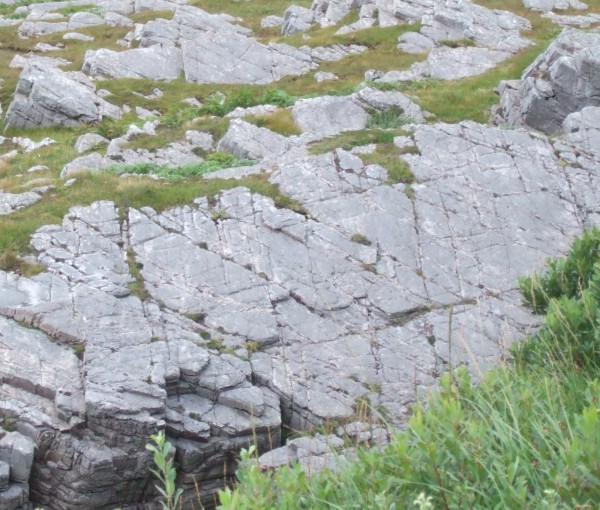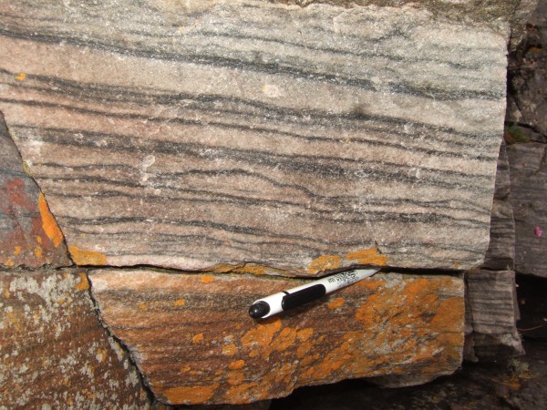 Heading back the way,the psammites show very clearly their sedimentary origin. The various layers are very obvious: