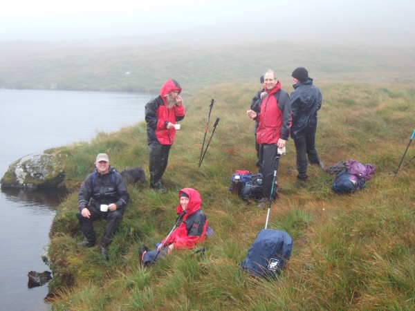 However, the weather was pretty grim so we decided that it would be best to head over and down and call it a day. A quick lunch stop took place beside a lochan - look at the mist: