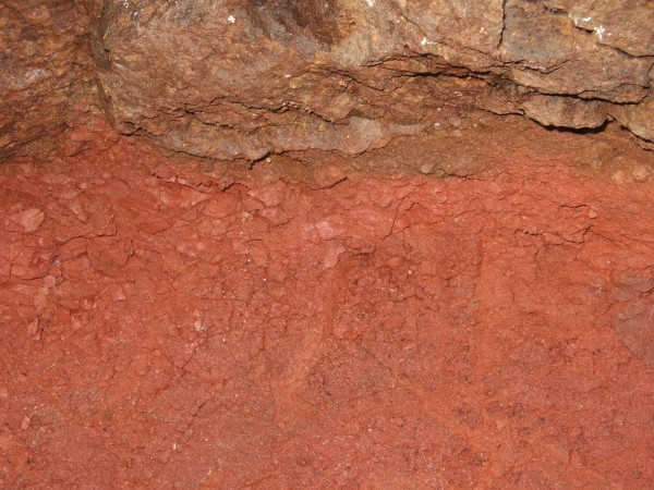 The red colour really stands out. That's the top of an old lava flow that you are looking at there. Would have been impressive at the time it was being poured out...