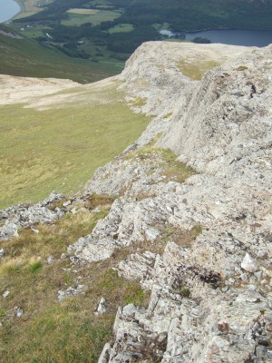Up high , the dyke just looks like a wall of rock at the back of Beinn a' Ghraig