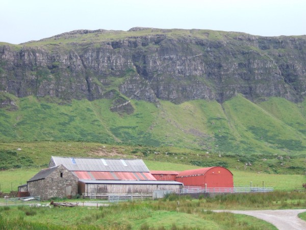 I parked the car at Balmeanach and followed the well sign posted path. First thing of interest is in the cliffs up above - a "transgressive " sill can be seen cutting across the lavas, meandering like a snake: