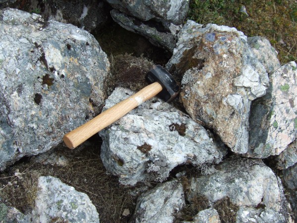 Some of the mica samples I took back with me - the hammer is about one foot in length, so you can get an impression of the sizes of these mica "books" as they get known. Best mica samples I have ever found in the Scottish hills. And still loads of the stuff lying around. No surprise really as it is is a seriously remote location