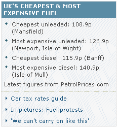 Just found this gem of a comparison chart on the BBCs own news web pages, regarding the cost of fuel: