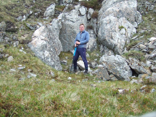 Me beside one of the workings. Note: hideous self conscious expression, always happens when you use a self timer. Note also: mines are totally unimpressive - little more than wee quarries in the hillside. No great dark, dank, spider infested tunnels deep into the bowels of the earth. All quite low key.