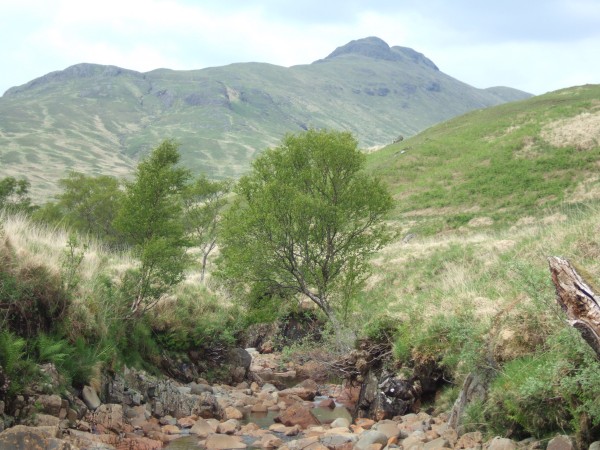 Beinn na Dutharach, seen from a rather dry stream. B na D has a lot of gabbro - thats what gives it the knobbly rocky appearance near the summit. Its also the hill that I mentioned in a previous blog that has a lochan called Lochan nam Ban Uaine - lochan of the green women.