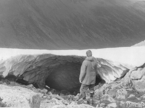 Several years ago, on a visit to Ben Macdui, I came across an absolute cracker. It was the remains of melting snow, forming a bridge or tunnel over the "March Burn", a stream that runs from Macdui down to the Lairig Ghru. In fact in my other blog, the picture of the highest point of the pass is where this stream comes down.