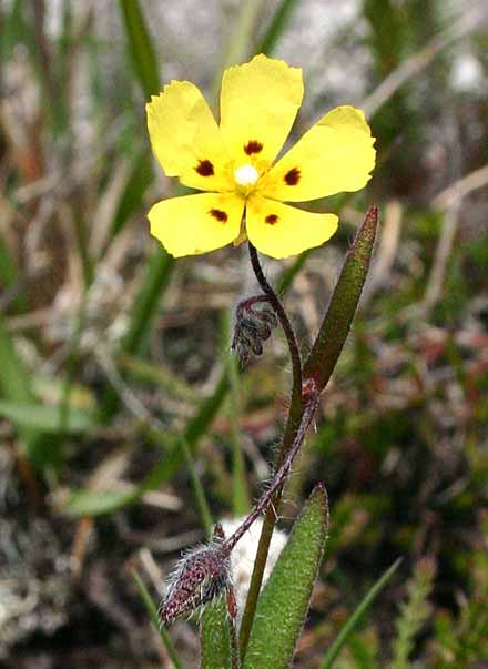 And all this was on-route to the find of the year, spotted rock rose Tuberaria Guttata, a not-so-exciting-looking plant except this is the first record of it in Scotland. Simon the birdyman and one of his friends Alison found it simultaneously (and you need to ask them to explain that one) in the far NE reaches of Coll, a long hike for us with cat-cam on back. And here it is below. Until now it was believed to only grow in Anglesey, the Lleyn Peninsula, the Channel Islands and western Ireland.