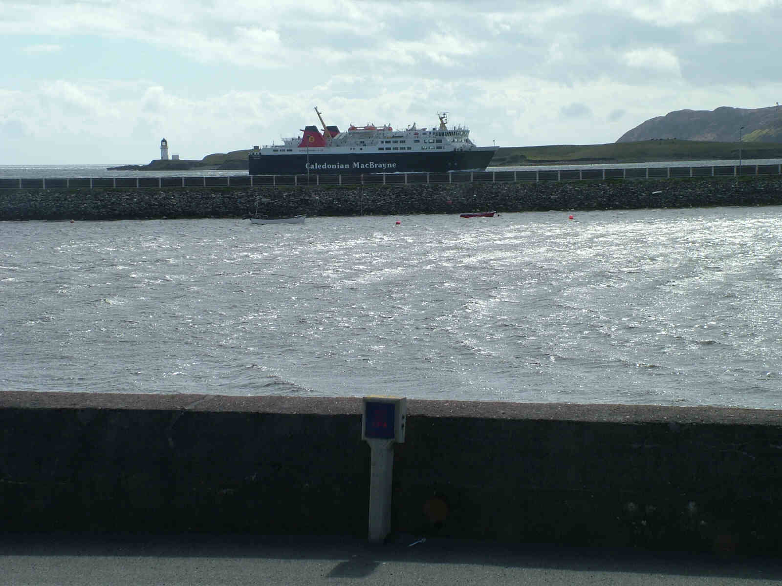 In my linklist features a webcam, which looks out over the Outer Harbour at Stornoway. It's not that good, but it shows what the weather is like, which ferries go in and out (if at all). At night, you just see the lights in the Coastguard Station as well as the regular blinks of the beacon in the channel off Arnish Point and Arnish Lighthouse (sic). The beacon carries a red light, and as this features in the description for the cam, anyone looking for a red light will be directed to an innocuous buoy outside Stornoway Harbour.