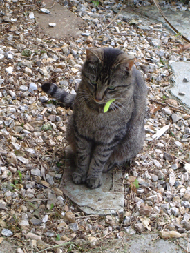 Many thanks for the well-wishing for MC. He is feeling much better, but a bit one-sided in the mouth. I've been softening his crunchies to make it not so harsh. He'll have a really mean-looking scar on his lower lip, so that should strike terror in the local felines on his patch now.