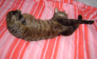 I'm beginning to wonder if it's only MC that reacts so violently to the V-E-T. Are all you other cats nice and mild? Do I have a delinquent on my hands? The Husband will come with us this time - he has a wonderfully calming effect on our little boy, so it will be interesting if that makes a difference.