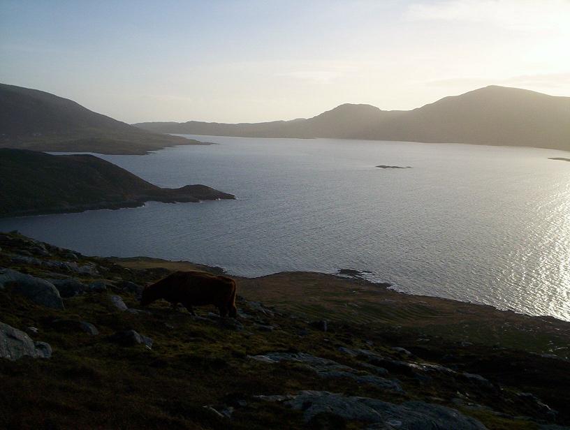 This principally for Arnishlighthouse but also for all those who love remote places - this picture shows the cultivation ridges of Reimseabhagh (pronounced 'Ramasaigh'), no 10 on your map of deserted villages in Park or a' Phairc Leodhasaich, just across Loch Seaforth from Molinginish. It is a very beautiful place and life there must have been good. The inlet is well sheltered and the small village well sheltered from the west winds by the hills. I believe it was cleared early in the 19th century.
