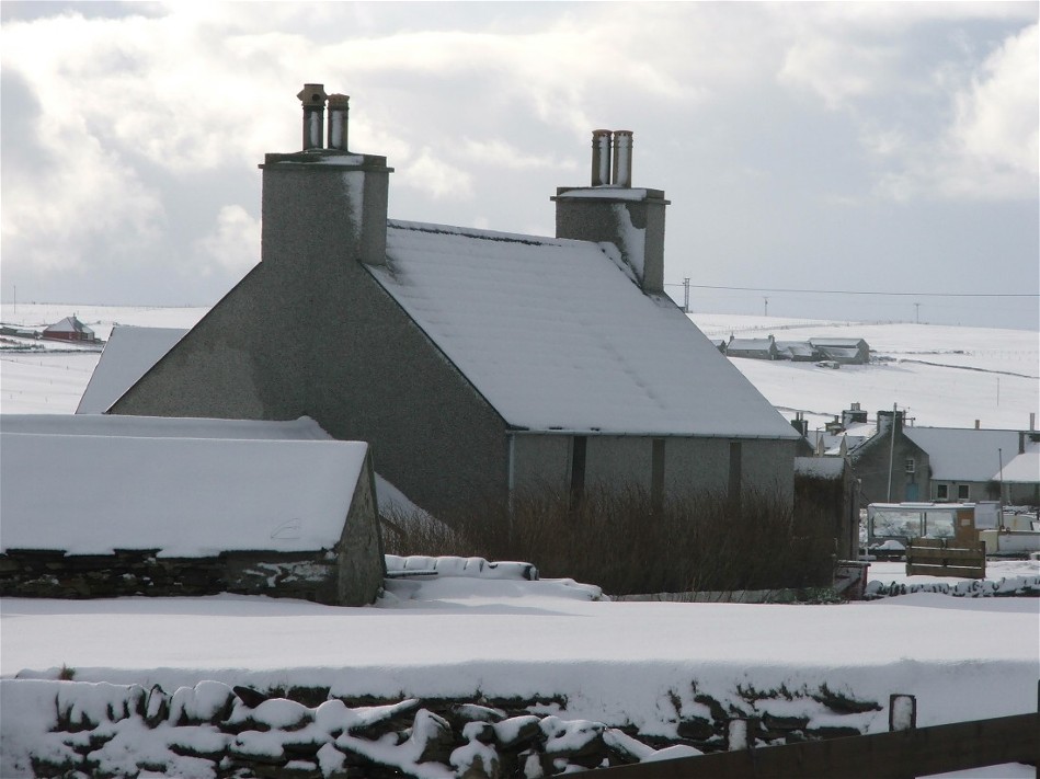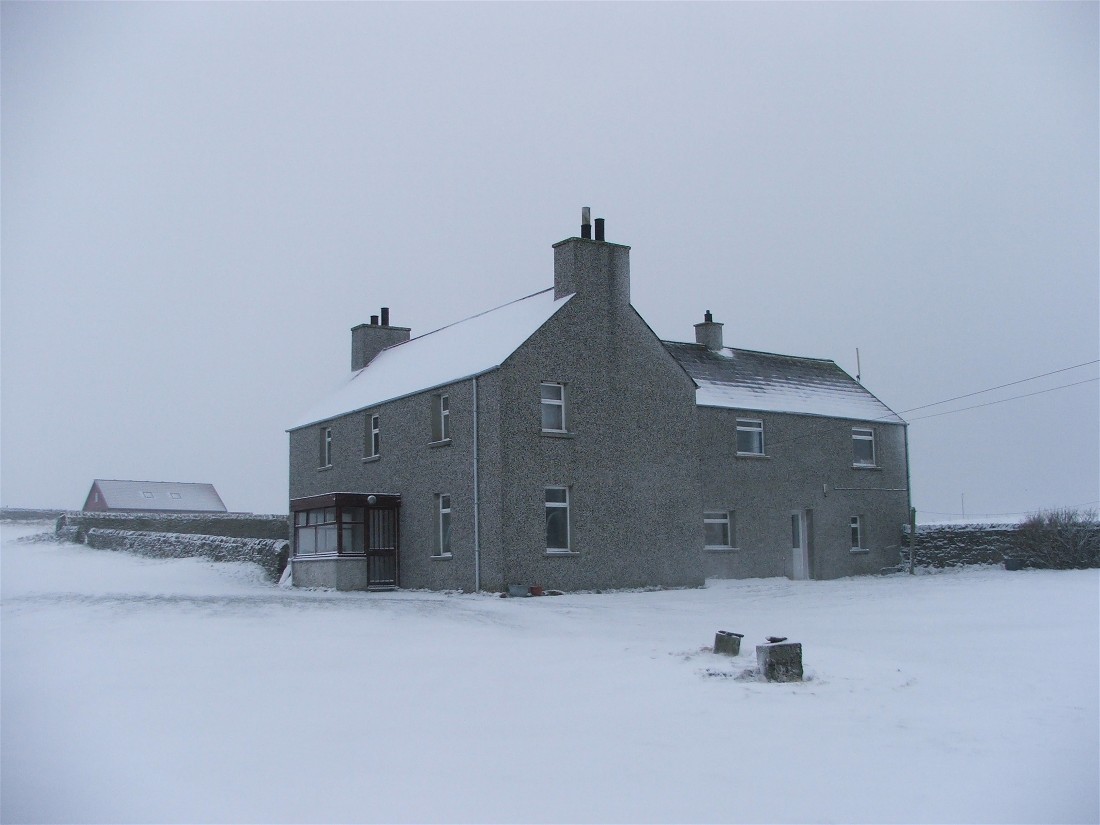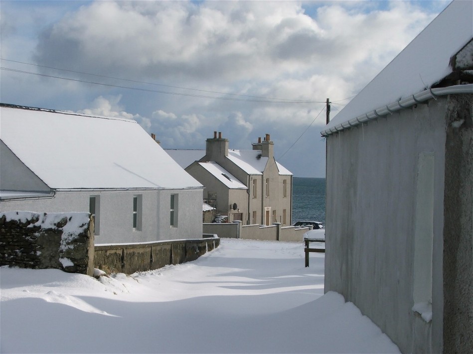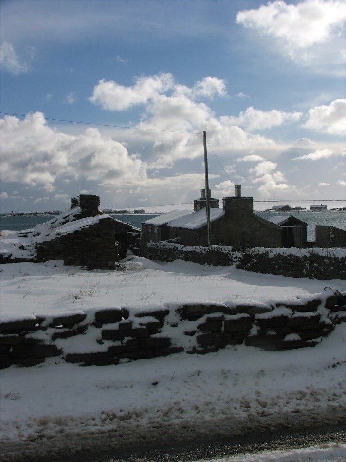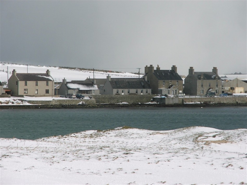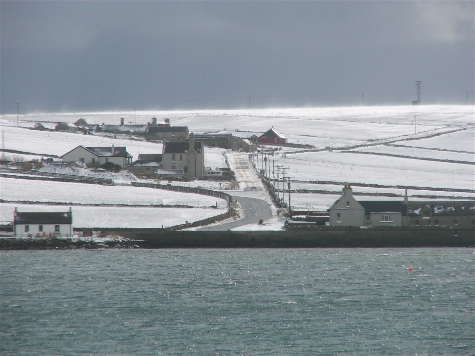 This photo was taken at 7.45am on Wednesday 22nd February. It looks down a slipway and accross Pierowall Bay