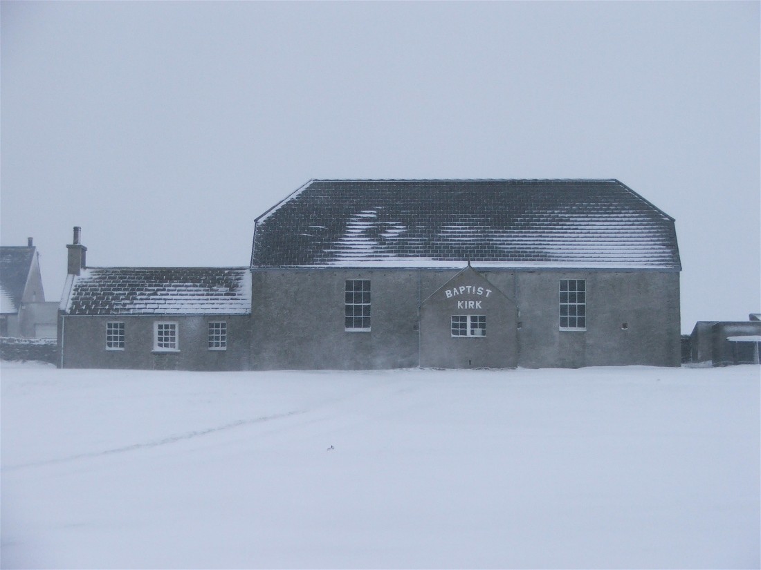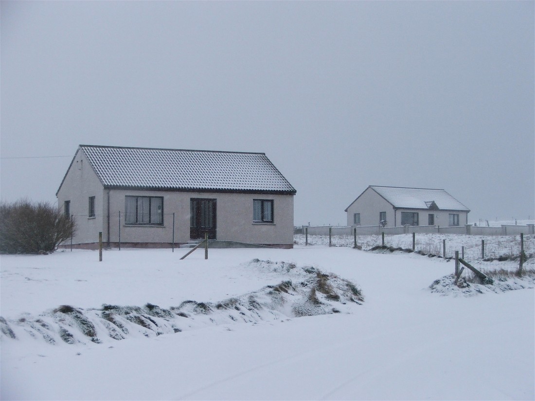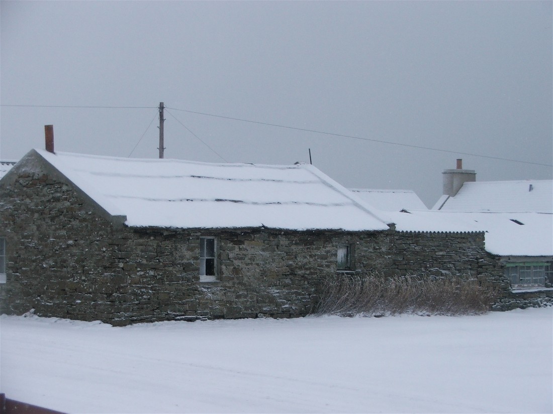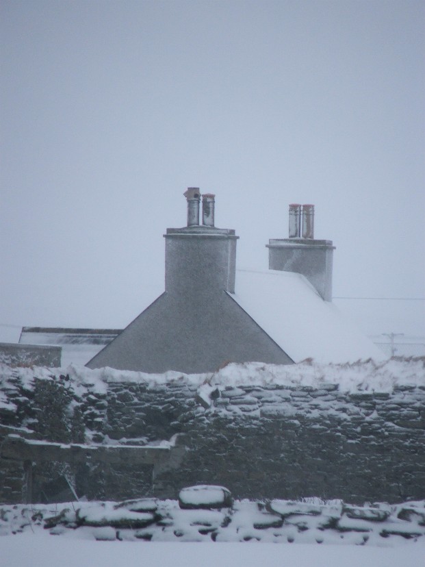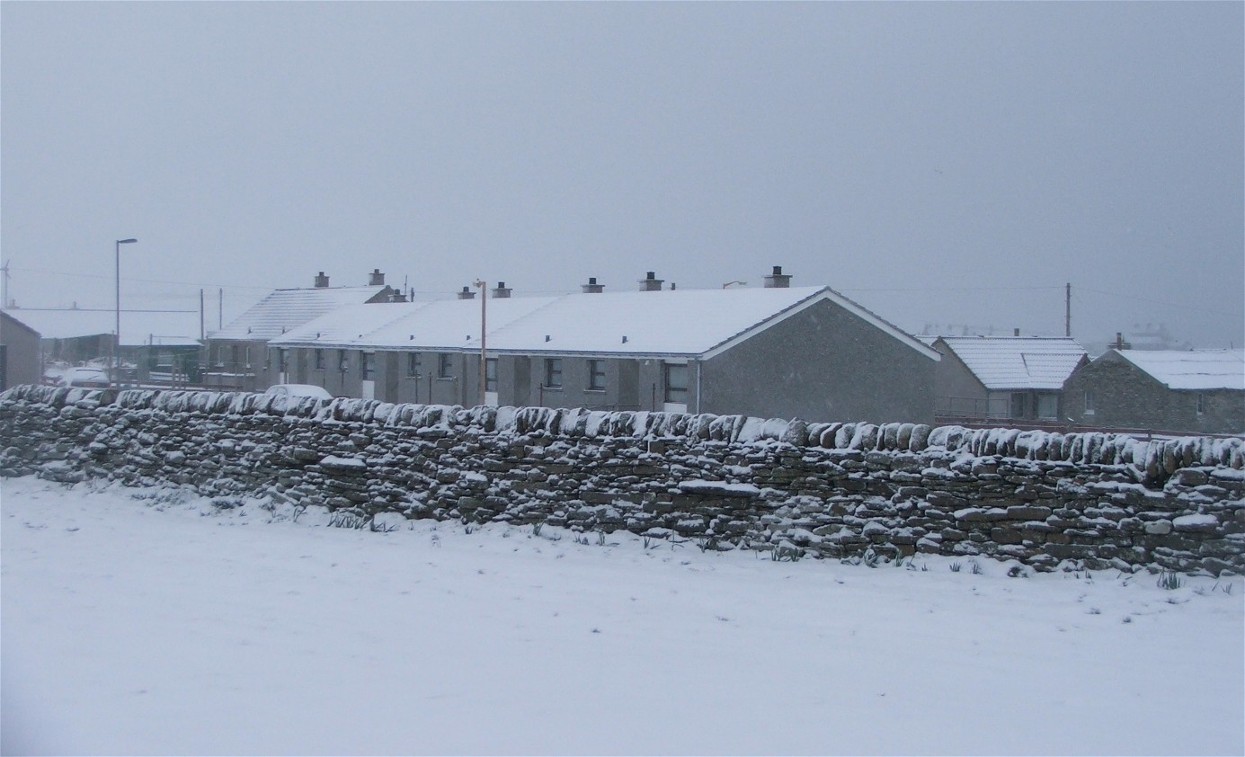This photo was taken at 7.45am on Wednesday 22nd February. It looks down a slipway and accross Pierowall Bay