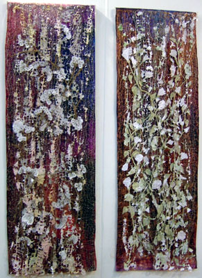I love blues so they always capture my attention but I also was/am very interested in the way Dawn has constructed her work, it is made up of layers, lacy see through with some solid elements, floating between 2 pieces of glass/perspex/??? This is a very long narrow piece and I really like it,