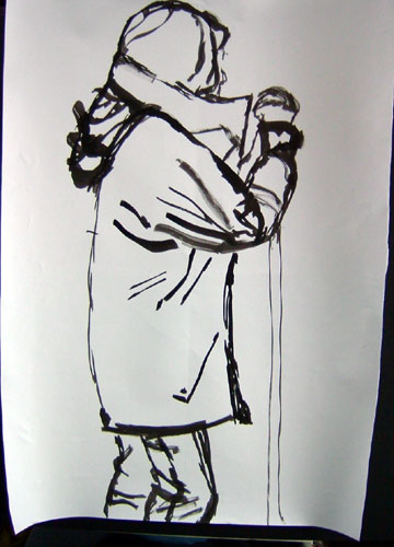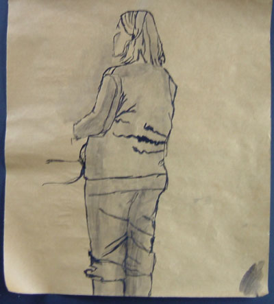 we then had a tea break and then my next 2 were hopeless again, the thing about sketching in ink or paint is you can’t go over mistakes or rub them out so they show even when you correct the line, hence 2 lines for the lower edge of the jumper!