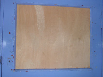 I was getting very fed up with the 3 planks of wood that covered the hole where a window should be but I had looked in the shed and no pieces of wood large enough, then after some very strong gales when I had a wonder around to see if things were alright I found the gales had delivered a piece of wood that was plenty large enough and suitable for my hole where a window should be, so I took off the planks and the beading to get all the glass out and cut the wood to fit, I have slapped some paint on the outside but left inside as it is only a temporary fix……..