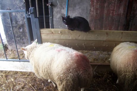 I would not dare pick silage out of THIS kitty's eyeball! I'd end up in intensive care at Balfour Hospital. Look at that expression on her face!! This is one of our new barn pusses that we adopted from the Orkney Cats Protection at Christmas time. They are all settling in very well. Two of them are very wild so I hardly see them - but this puss and her black-and-white brother allow me to see them now and again. I am a good cat slave!
