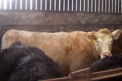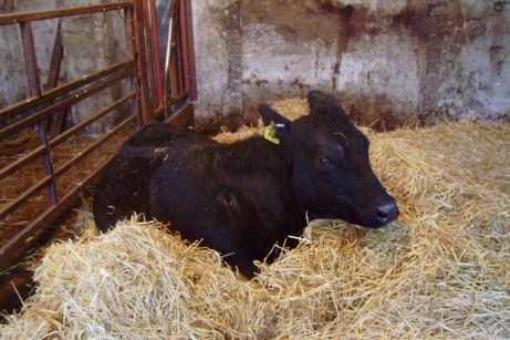 This is the poor lass with the trapped nerve. She's a tame coo and won't be much of a hassle to relocate to a comfortable pen.