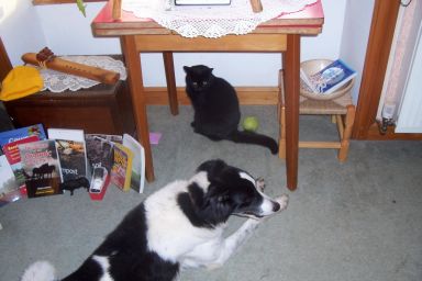 We adopted Zeb while on our honeymoon in August. We found him at the SSPCA in Inverness and spirited him away to the farm. He now lives on about 300 acres of prime cat-chasing land and will live out his life being loved. He's about 7 years old and comes from Glasgow - so he's loving rural life!!