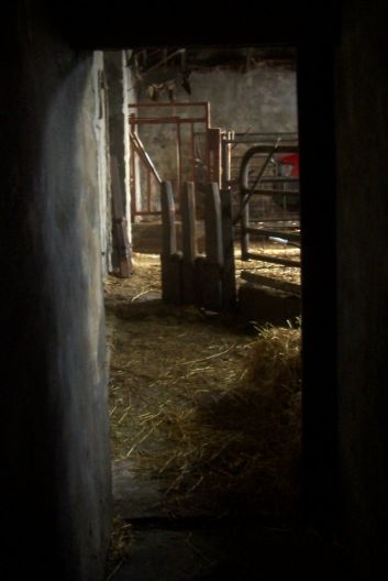 This is a passage leading from the old stone "tied byre" to the upper court where we have bedded calving pens awaiting the next burst of calves!