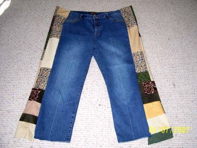 I just received some patchwork jeans sewn by an American lady in Colorado. I love color and having pannels of patchwork in my "breeks" really works for me: