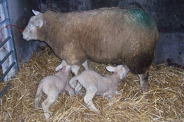 Elsie-yow could not get her lambs out so we had to help the poor critter. We hate interfering with Mother Nature because it's very stressful on the animal. I have been hand-feeding Elsie and touching her back and head for about two weeks in order to help tame her down as she's one of our two pure Texel yows. I hope to tame her lambs so I need Elsie to be tame first and foremost!