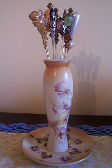 The hatpins and hatpin holder are reproduction antiques - there's no WAY I'd buy the real McCoy! Too expensive. Besides, I'd be too paranoid to use them if they were expensive antiques!