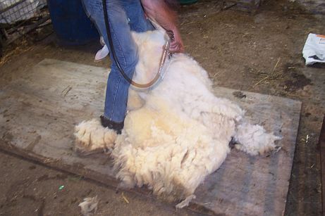 (The sheep shot like a rocket out of her fleece!!) I was stunned when I saw Elsie emerge from her fleece: she was so scrawny undernieth! I had expected her to be MUCH bigger then she was!