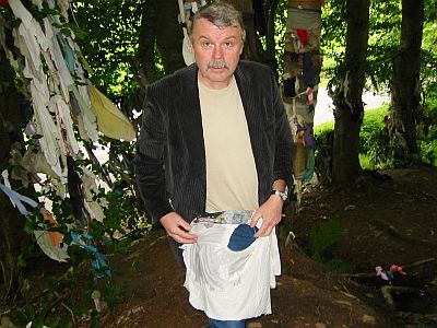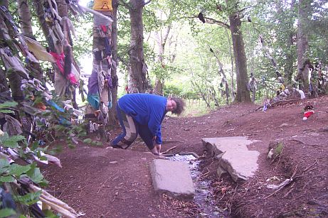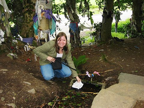 We came armed with a (clean) hankie from Orkney. I've dipped it in the well water and touched it to my injured ankle.