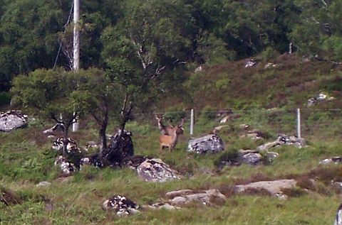 You should be able to make out the twa stags. There was a doe with them and they were grazing - until we showed up. Then they all stood there staring at us with mounting suspicion. Finally, after posing for the camera a few times, they all trotted back into the forest.