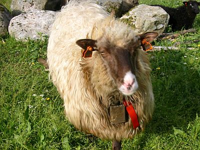 This sheep is wearing more jewelry then most humans!!! (Dag sent us a bell and a red tag for our sheep Mathilda! So now she will be as richly adorned hehehe!)