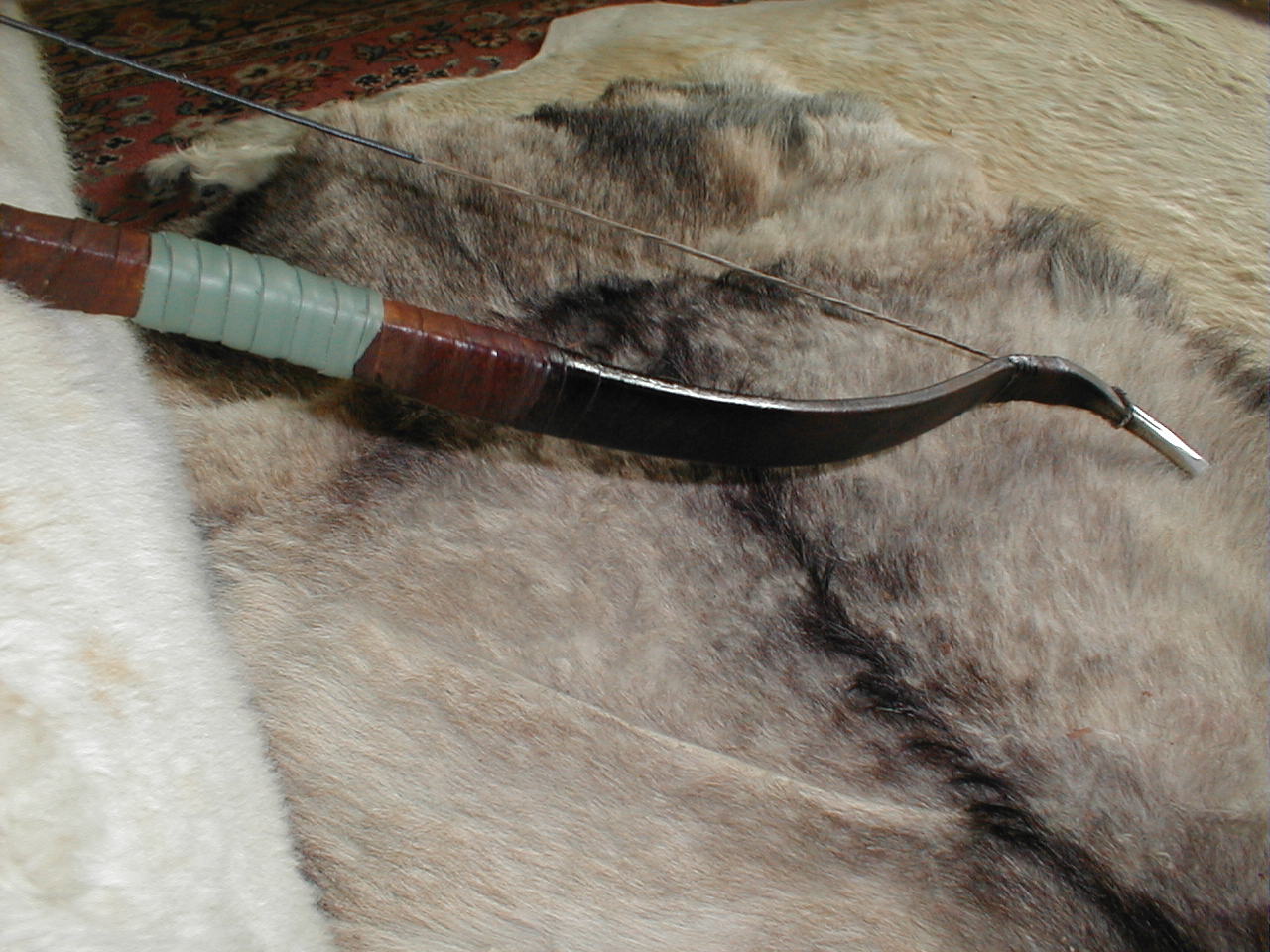 Chuffed tae wee tiny bits I am. In case ye dinnae ken, this wee beastie is a Hunic bow, leather wrapped, 38lb draw weight, absolutely gorgeous thing it is and I love it! ----> Huge grin here.