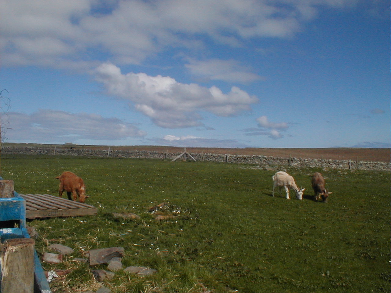 anyways...they both sit the nest, but the flock of geese have eaten the grass around the front down to the soil and to give it time to recover I thought, move the four geese not nesting round the back to the peedie field, which has stone dykes on three sides with a gate in one of them, and chicken wired fencing on the fourth, leading out to a farmers field.