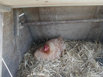 It was also the first day of the year I let my remaining goats outside, they love it, basking in the sun, nibbling the fresh spring grass, quite content...as is the dumpy little brown hen sitting atop a clutch of about a dozen and a half eggs....she puffs herself out to the limit, to keep that lot covered!