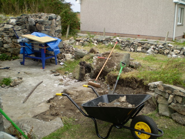 Hi, Im back now after my little accident my back feel's alot better now and thanks for your kind comments and yes I am talking things a little slower now or maybe the pain killers are working?...........we are well under way to removing the 1st part of the ruin I have to tell you this is a labour of love while breaking up by hand. Sarah my wife has repositioned them to the back as an ornimental wall, while the small stones / rubble will act as hard core for my new workshop we have also cleared the neigbours overgrown fushia which has given us another 2 metres to the rear garden perimeter............Oh and we have also have a new family addition............our 5 week old Silkie chickens x 4, so free range eggs will be availible soon.