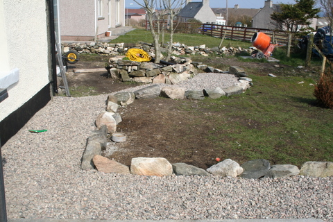 I have now managed to get the front garden more established with the gravel path moving around to the side of the property so the soggy ground is getting a little better, thus removing more stones from our old ruin (back breaking) ;o) well almost.