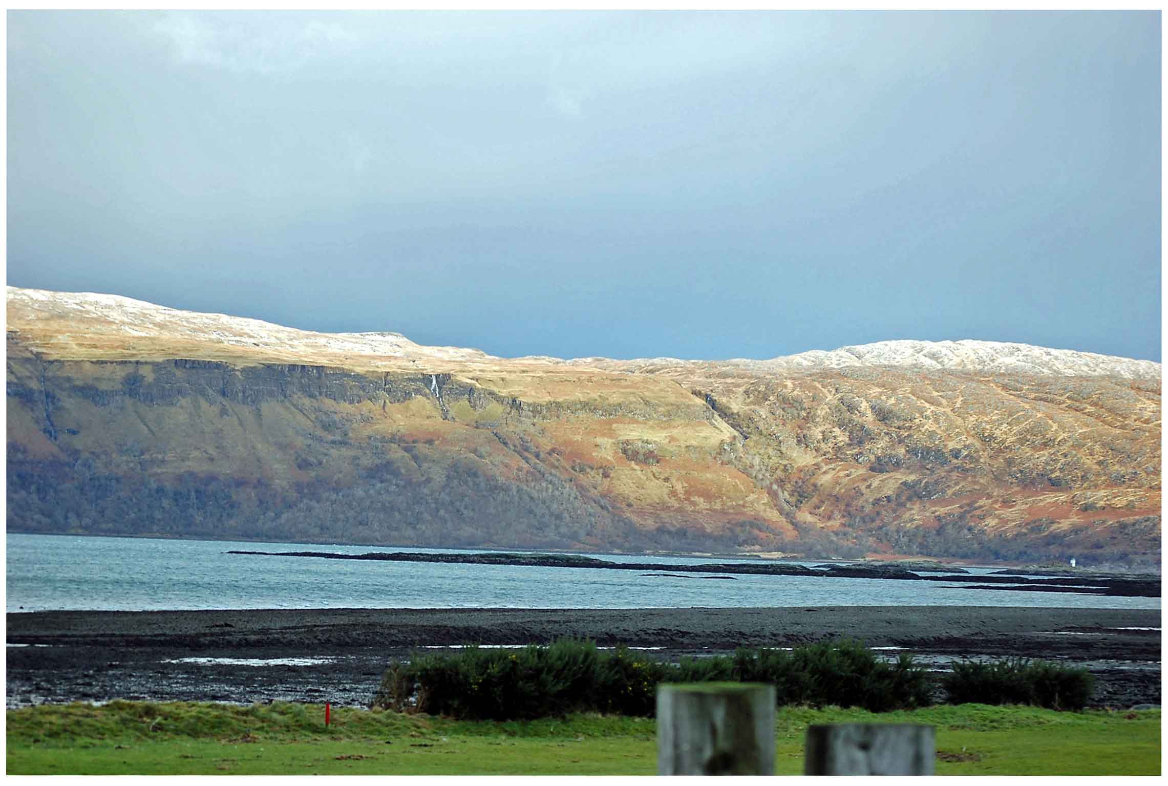 No - it was Mull and across the Sound to the Mainland to the Morvern Hills - not much snow on the low ground but enough to dust the tops of the mountains - lots of hail storms today which gave the impression of snow at low ground - like millions of frozen white ball bearings - very strange. My crocuses photographed on Monday are now gone - just as well I took the snap when I did - I guess they made a tasty meal for someone! As I write this, the wind is gusting and is quite scary - feels like the house could fly away - visions of Dorothy in "Over the Rainbow" when the house disappears in a tornado or is it a cyclone (of course the Judy Garland version). Hope it is calmer where you are!