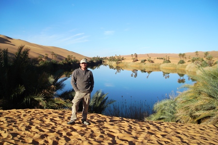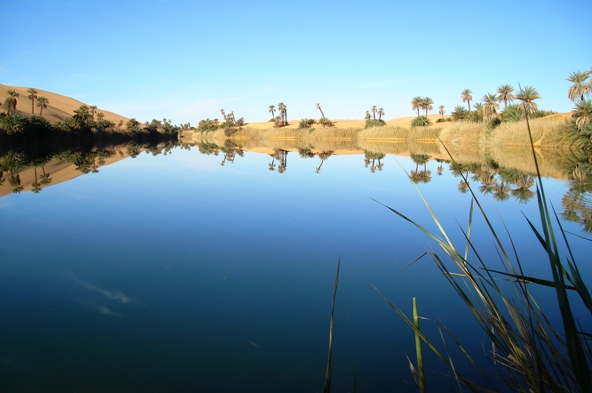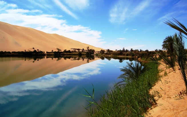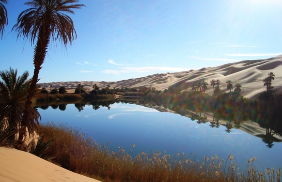One could say a 'place of water within a sea of sand'.